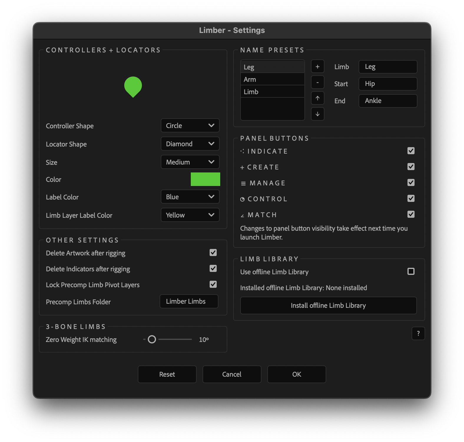 Then, enable the Use offline Limb Library checkbox to tell Limber to use the local version instead of the online version. If you want to switch back to using the online library, simply disable the checkbox.